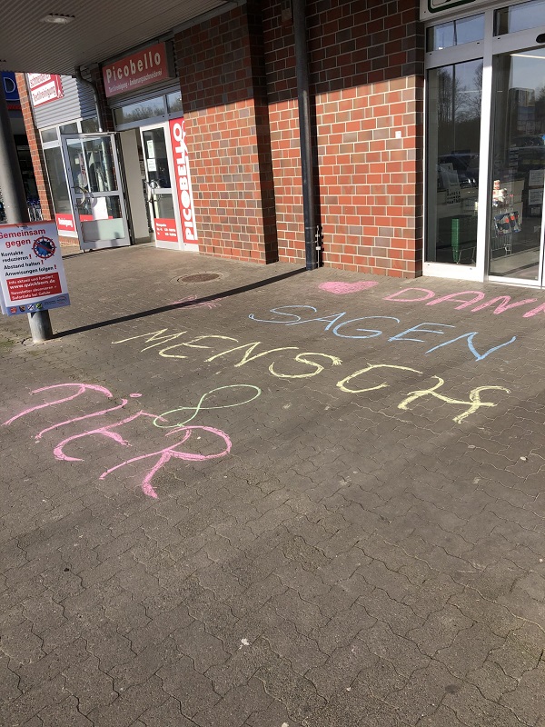OK, dann gibt es aber auch noch die anderen. Die, die aufopferungsbereit für ältere Menschen einkaufen gehen, andere Formen von Nachbarschaftshilfe leisten, auf ihren Balkonen sitzen und Beethovens Ode an die Freude spielen, für Ärzte und Pfleger klatschen oder mit bunter Kreide nette Botschaften für die tapferen Einzelhändler auf das Pflaster vor Supermärkten kritzeln. Oder eine Kerze anzünden. Oder einfach nur die Fresse halten.